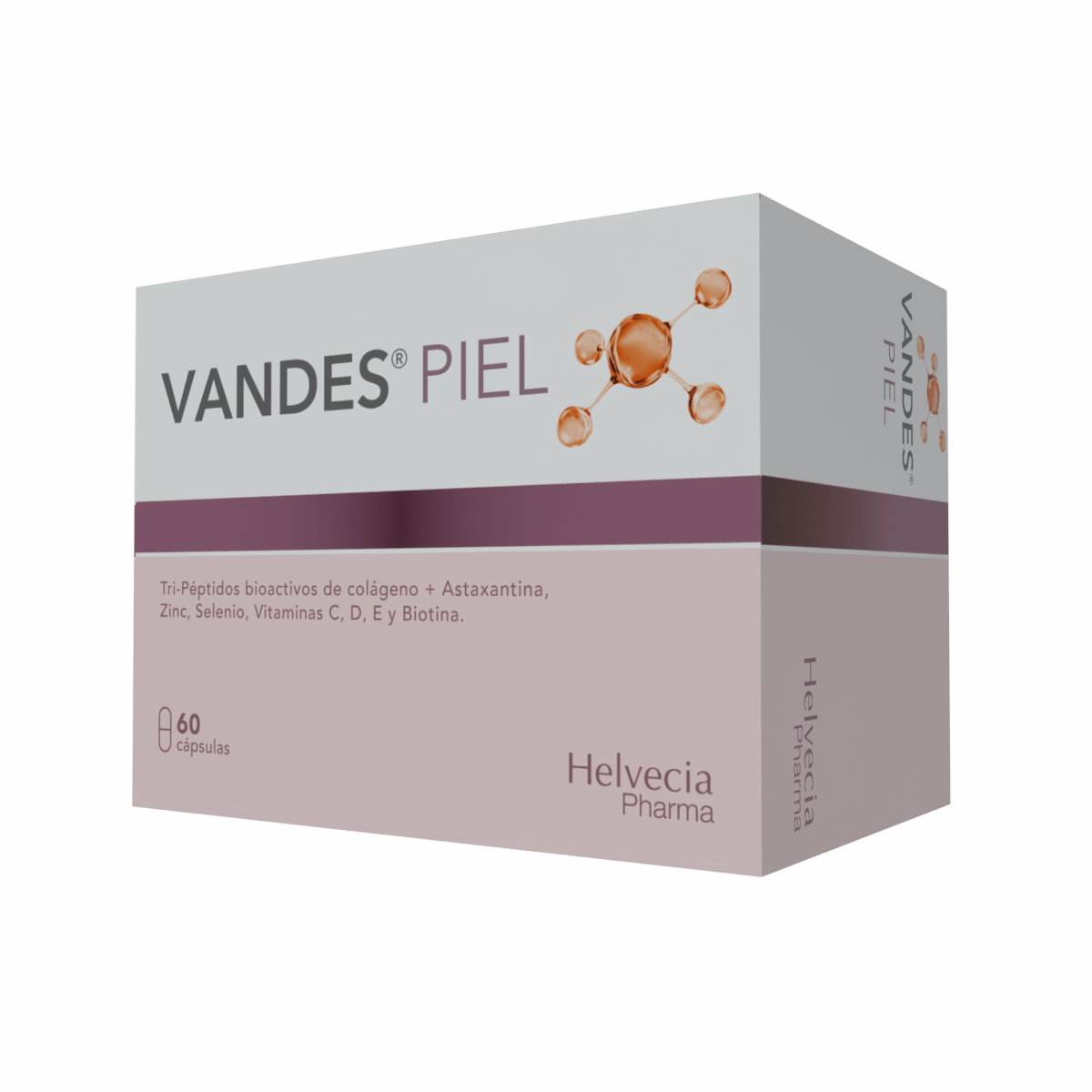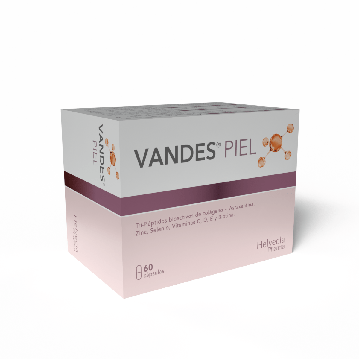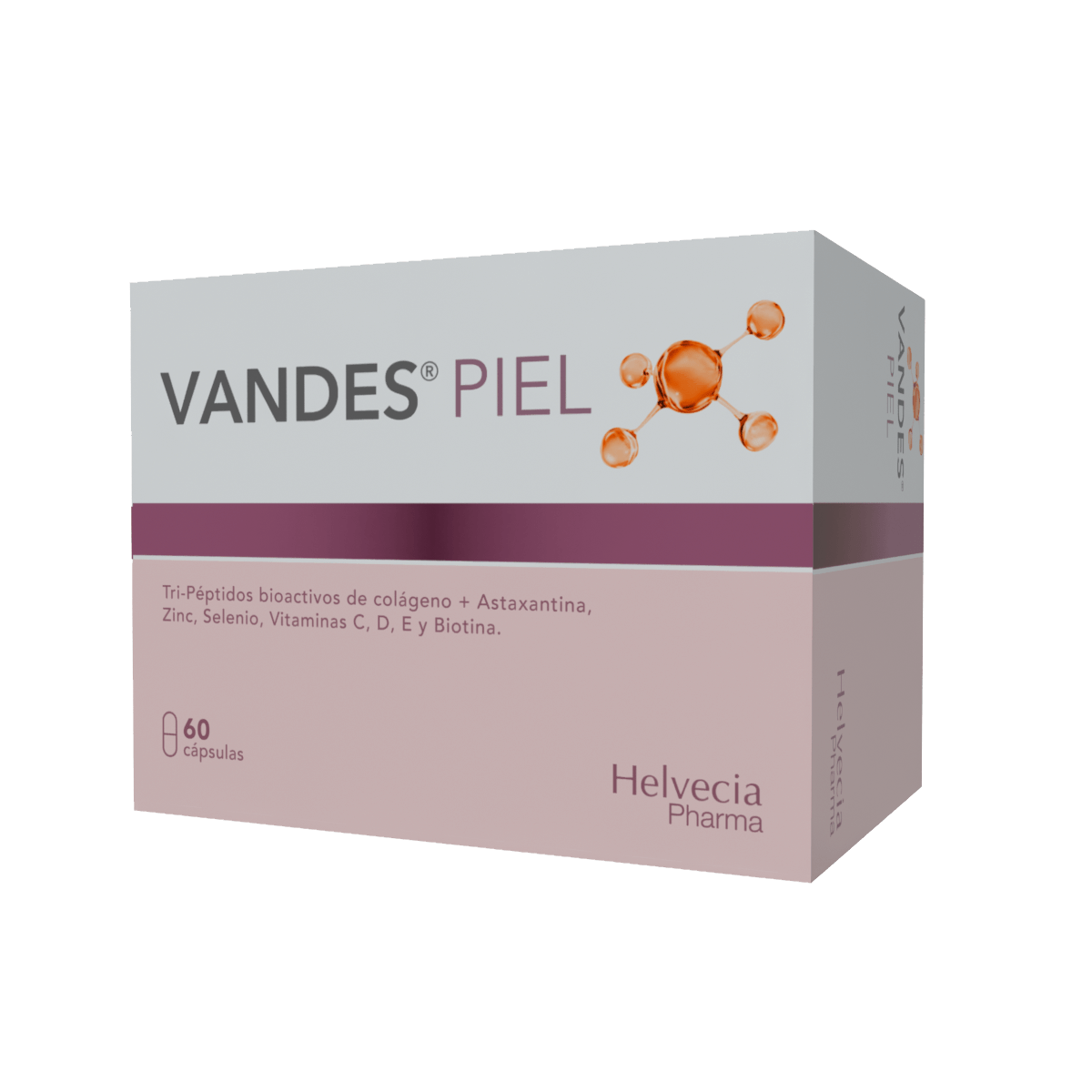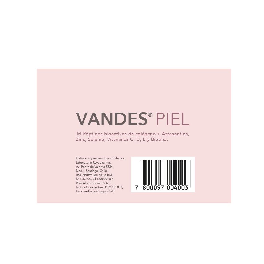 Vandes Piel Cápsulas es un suplemento alimentario de última generación, desarrollado como evolución de la línea Vandes, que combina tripéptidos bioactivos de colágeno de alta biodisponibilidad, antioxidantes avanzados como Astaxantina natural , y micronutrientes esenciales para el cuidado integral de la piel, cabello y uñas.